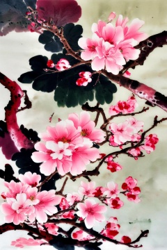 <lora:AgainChineseInkPainting:1>,AgainChineseInkPainting, branch, no humans, bird, flower, tree, traditional media, animal focus, chinese ink painting, white background, peach blossom, simple background, animal, painting \(medium\), watercolor \(medium\), in tree, pink flower, grey background