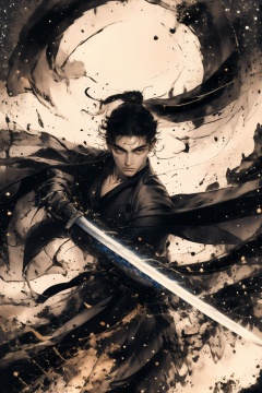 <lora:AgainChineseInkPainting:1>,AgainChineseInkPainting, monochrome, greyscale, 1boy, black hair, cloud, hair over eyes, holding, holding sword, holding weapon, katana, long hair, male focus, night, sky, solo, star \(sky\), starry sky, sword, weapon