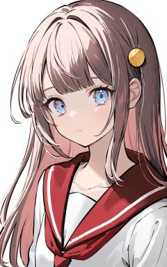 1girl, pink hair, solo, blue eyes, red sailor collar, white background, long hair, shirt, sailor collar, upper body, simple background, white shirt, bangs, hair ornament    <lora:XLTEST 10:0.75>