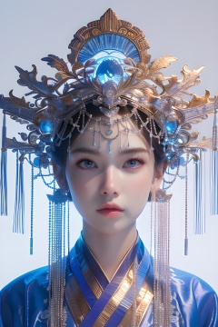 colorful,neon lights, Cyberpunk beauty ,1girl ,artist name ,bangs, blue eyes, closed mouth ,earrings ,eyelashes ,face, glowing ,gradient, gradient background ,hair ornament ,hair stick ,halo ,jewelry ,lips ,long hair, looking at viewer ,makeup ,mascara, portrait ,simple background ,solo, tassel ,upper body ,cyberpunk ,3d, neon light ,Bagua ,Tai Chi ,future technology, glow, glow effect ,high detail, best quality ,Tang Dynasty clothing ,hanfu , <lora:20240218-1708234260649:0.7>, <lora:lora_美女大胸写实:0.4>
