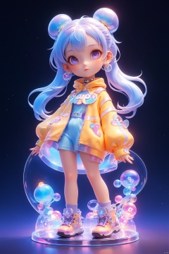 transparent color PVC clothing, transparent color vinyl clothing, prismatic, holographic, chromatic aberration, fashion illustration, masterpiece, girl with harajuku fashion, looking at viewer, 8k, ultra detailed, pixiv,