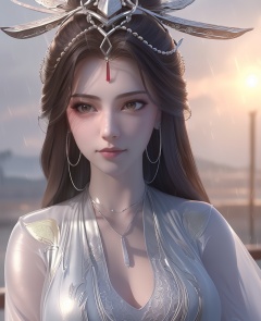 <lora:557-DA-百炼成神-玉婆婆:0.8>(,1girl, ,best quality, ),looking at viewer,  ,,ultra detailed 8k cg, ultra detailed background ,ultra realistic 8k cg,          cinematic lighting, cinematic bloom, (( , )),,  , unreal, science fiction,  luxury, jewelry, diamond, pearl, gem, sapphire, ruby, emerald, intricate detail, delicate pattern, charming, alluring, seductive, erotic, enchanting, hair ornament, necklace, earrings, bracelet, armlet,halo,masterpiece, (( , )),, realistic,science fiction,mole,   ,cherry blossoms,,(((Best quality, masterpiece, ultra high res, (photorealistic:1.4), raw photo, 1girl, ,rain, , sunlight, sunset, qianqiu wanxia,     )))  (cleavage), (),