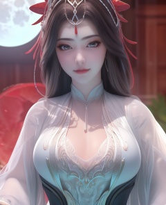 <lora:557-DA-百炼成神-玉婆婆:0.8>(,1girl, ,best quality, ),looking at viewer,  ,ultra detailed background,ultra detailed background,ultra realistic 8k cg, , ,masterpiece, (( , )),, ultra realistic 8k cg, ,      ,lily \(flower\) ,full moon ,strawberry blossoms      (cleavage), (),