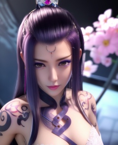 <lora:559-DA-少年歌行-月姬:0.8>(,1girl, ,best quality, ),looking at viewer,  ,,ultra detailed background,ultra detailed background,ultra realistic 8k cg,, ,masterpiece, (( , )),ultra realistic 8k cgSurrounded by strange, movie perspective, advertising style, Colorful background, splash of color A beautiful woman with delicate facial features,tattoo all over body, flower arms,from above,