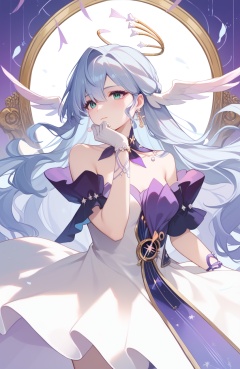 <lora:知更鸟pony:1>,robin,a girl named robin,1girl,white dress,bare shoulders,halo,white gloves,earrings,bracelet,head wings,, (score_9,score_8_up,score_7_up),(masterpiece,best quality,high quality:1.2),absurdres,
