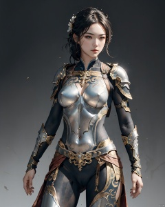 masterpiece,best quality,1girl, beautiful chinese girl, (beautiful detailed armor), (silver armor),(bodypaint:1.2),silver overall bodysuit,