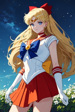 1girl,looking at viewer,solo,long hair,very long hair,blonde hair,blue eyes,choker,tiara,sailor collar,hair bow,bow,gloves,skirt,high heels,sailor senshi uniform,standing,<lora:Minako:0.8>,Minako_CYQL,cowboy_shot,beautiful face,beautiful eyes,glossy skin,shiny skin,Grapevines, Tuscan villa, Vineyard rows, Springtime blooms, Tuscan landscape, Rustic charm,beautiful detailed sky,beautiful detailed glow,posing in front of a colorful and dynamic background,masterpiece,best quality,beautiful and aesthetic,contrapposto,female focus,wallpaper,fashion,