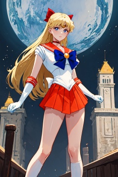1girl,looking at viewer,solo,long hair,very long hair,blonde hair,blue eyes,choker,tiara,sailor collar,hair bow,bow,gloves,skirt,high heels,sailor senshi uniform,standing,<lora:Minako:0.8>,Minako_CYQL,portrait,beautiful face,beautiful eyes,glossy skin,shiny skin,Imperial palace hall, Feast, Noontime, Opulence, Royalty,beautiful detailed sky,beautiful detailed glow,posing in front of a colorful and dynamic background,masterpiece,best quality,beautiful and aesthetic,contrapposto,female focus,wallpaper,fashion,