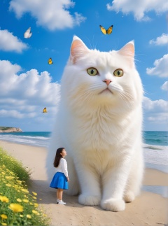 <lora:white cat 过拟V1.0-0008:0.7>,large white cat,a young girl,at the seaside,, (masterpiece, best quality, highres:1.2),