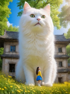 <lora:white cat 过拟V1.0-0008:0.8>,large white cat,a young girl,in the middle of the forest, large building,, (masterpiece, best quality, highres:1.2),