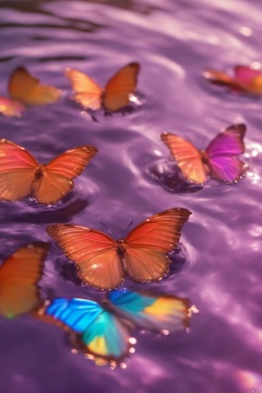 Water_butterfly,Rainbow fluorescent colors butterfly,water,water ripplesrple