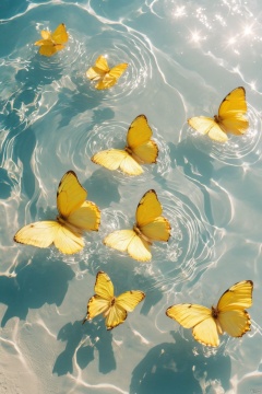 Water_butterfly,yellow butterfly,water,water ripples,beach