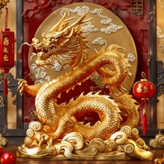 中国红丨中国龙丨中式场景丨招财进宝丨工艺品丨摆件丨国潮风格丨插画丨中国风 - long-XL-V1