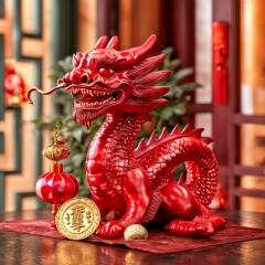 中国红丨中国龙丨中式场景丨招财进宝丨工艺品丨摆件丨国潮风格丨插画丨中国风 - long-XL-V1