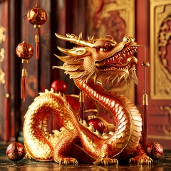中国红丨中国龙丨中式场景丨招财进宝丨工艺品丨摆件丨国潮风格丨插画丨中国风 - long-XL-V1