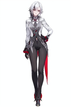 score_9,score_8_up,score_7_up,score_6_up,8k,best quality,masterpiece,(ultra-detailed:1.1),(high detailed skin),(full body:1.4),white background,standing,looking at viewer,(solo:1.4),hand on hip,<lora:Arlecchino-v100:0.8>,Arlecchino,def clothes,1girl,x-shaped pupils,red pupils,black gloves,pants,symbol-shaped pupils,(white background, simple background:1.3),(beautiful_face),((intricate_detail)),clear face,((finely_detailed)),fine_fabric_emphasis,((glossy)),full_shot,
