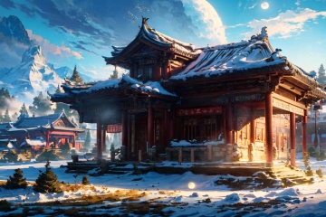 (masterpiece, top quality, best quality, official art, beautiful and aesthetic:1.2),((masterpiece, best quality, high quality, highres, ultra-detailed)),cloud,tiger,animal,white tiger,sky,monster,(look at viewer,outdoor,full body):1.5,Background\(night,(full moon):1.5,snow,chinese ancient buildings,courtyards,mysterious pavilions,mountains,forest\),masterpiece,best quality,unreal engine 5 rendering,movie light,movie lens,movie special effects,detailed details,HDR,UHD,8K,CG wallpaper