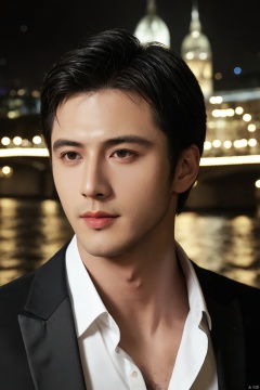((masterpiece)),((best quality)),((high detial)),((realistic)), depth of field,hubg_jsnh, hubgman,night, a handsome man