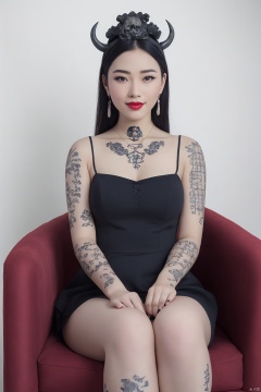 (RAW photo, best quality),(realistic, photo-realistic:1.3),best quality,masterpiece,1girl,cn tattoo,detailed face,cn tattoo,smile,