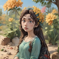 Clay model,clay material,in the style of clay animation, 1girl, solo, long hair, flower, outdoors, day, looking at viewer, lips, Dingge,Clay