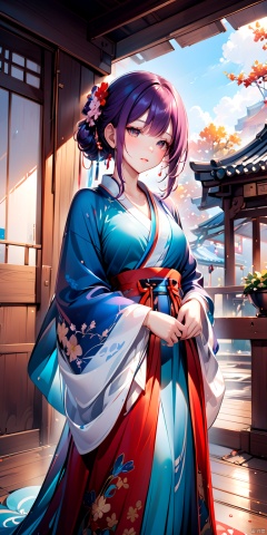 A girl, silk Hanfu, white,,CG