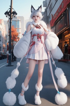 future008,Fox ears,White skirt,Fur trim,Korean clothing,Paw gloves,Paw shoes,<lora:future0511-shenmiao:0.8>,standing,city,