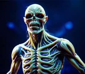 creature,horror,detailed anatomy,macabre,model,close-up,sci-fi,fantasy,creature design,dark background,shiny texture,lifelike,silicone model,sculpture,eerie,glossy finish,high-resolution image,anatomic accuracy,blue lighting,artificial creation,simulated veins,artistic,<lora:kesulu-10:0.6>,