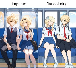 masterpiece,impasto,aether (genshin impact),lumine (genshin impact),blonde hair,school uniform,1girl,sleeping,1boy,sitting,serafuku,shirt,sailor collar,necktie,siblings,short sleeves,yellow eyes,neckerchief,bag,pants,white shirt,skirt,braid,closed eyes,hairband,red neckerchief,long hair,watch,red necktie,black hairband,smile,black pants,brother and sister,ahoge,train interior,bangs,blush,contemporary,blue skirt,hair ornament,braided ponytail,school bag,wristwatch,alternate costume,hair between eyes,parted lips,blue sailor collar,collared shirt,vest,short hair with long locks,window,single braid,feather hair ornament,