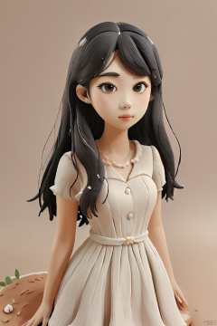 1girl,black hair,air bangs,short neck,long hair,delicate facial features,full body,white dress,simple background,clay,3D clay,best quality,Ultra HD,Ultra Details,masterpiece,