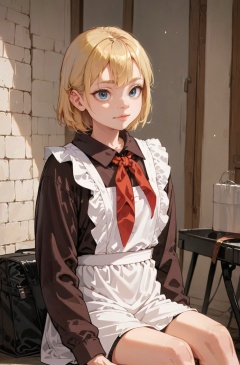 1girl,blonde,(solo:1.5),sittingwhite apron,brown dress,(long sleeves:1.1),red neckchief,cccpuniform, <lora:Perfect Hands:1> <lora:add-detail-xl:0.5> <lora:苏式校服:0.85> <lora:age_slider_v4:-2> <lora:Xenotrip:0.5>, score_9, score_8_up, score_7_up, score_6_up, score_5_up, score_4_up,zPDXL