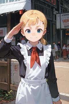cinema lens,dynamic angle,1girl,blonde,solo,winter palace,Young pioneers ceremony straight-arm salute, white apron,black dress,long sleeves,red neckchief,cccpuniform,white cuff<lora:Perfect Hands:1><lora:age_slider_v4:-2> <lora:naip33:0.8> <lora:苏式校服:0.7> <lora:comiclo-xl-pony:0.5>, score_9, score_8_up, score_7_up, score_6_up, score_5_up, score_4_up,zPDXL