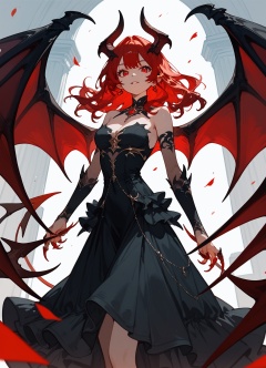 (score_9,score_8_up,score_7_up),1girl, girl demon, red hair, red eyes, wings, claws, black dress, beautiful_face