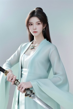 (Best quality, masterpiece:1.2),ultra fine,realistic textures and details,(extremely detailed skin and clothing textures, exquisite jewelry and sword details),sword wielding girl,heroic and charming,firm eyes,graceful posture,gorgeous ancient style clothing,flowing long hair,sharp sword,sword edge sparkling with cold light,gorgeous background,dreamy atmosphere,elegant posture,vivid expressions,strong contrast colors,high definition.,HS-holding sword,