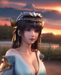 <lora:568-DA-星辰变-姜妍:0.8>(,1girl, ,best quality, ),looking at viewer,masterpiece, (( , )),, realistic,science fiction,mole, ultra realistic 8k cg, , sun,sunset, (cleavage), (),
