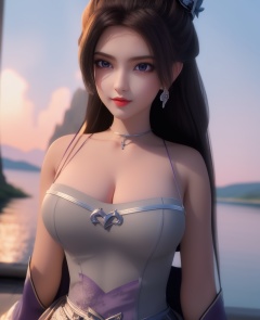 <lora:569-DA-星辰变-朔燕:0.8>(,1girl, ,best quality, ),looking at viewer,  ,ultra detailed 8k cg, ultra detailed background,  ,masterpiece, (( , )) , lake,upper body,   (cleavage), (),