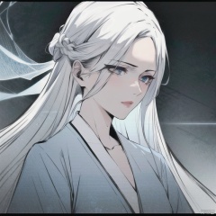 solo, highly detailed, cinematic highlight hair, (best quality), ((masterpiece)),1girl, silver hair,simple_background, (white veil), long hair, blue eyes, portrait,ning,hanfu, ning,see-through,