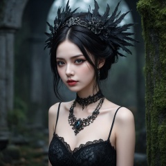 (Hyperreal:1.4),(((full body shot:1.5))),raw,emotional,dynamic,distortion for emotional effect,vibrant,use of unusual colors,cute cinematography,(realistic, photo realistic:1.4),siren with hypnotic voice,Majestic Eagles,Smart Fabrics,Mossy Stone Bridge,Cryptocurrency Mining Farm,night,cemetery,Halloween,gothic,a beautiful 20 years old gothic girl,lipstick,black eyeshadows,tears from the eyes,black hair,black mantle,dark studio,in the style of Necromancy,detailed eyes,detailed face,detailed skin,