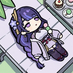 lying-on-back, chibi, full body,(masterpiece),(best quality),macaron, 1girl, food, wagashi, solo, raiden shogun, purple skirt, dango, sweater, purple eyes, braided ponytail, mole under eye, purple hair, skirt, pantyhose, ice cream, turtleneck, hair ornament, sitting, sanshoku dango, tomoe \(symbol\), breasts, jewelry, long hair, parfait, braid, looking at viewer, mitsudomoe \(shape\), sweets, holding, necklace, bangs, mole, ice cream cone, purple nails, earrings, purple jacket, long sleeves, open clothes, bag, turtleneck sweater, open jacket, off shoulder, black pantyhose, nail polish, jacket, outdoors, hair flower, day, cake, flower, large breasts, very long hair, alternate costume, ribbed sweater, table, dessert, chair, purple flower, sleeves past wrists, parted lips, open mouth, holding food, purple sweater, knees together feet apart, tree