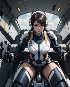 sitting,detailed mechanical seat,(mecha musume),(in cockpit),