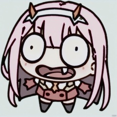 (chibi),(masterpiece),(best quality),1girl, aqua_background, aqua_eyes, blue_background, buttons, double-breasted, fangs, green_eyes, hairband, horns, long_hair, looking_at_viewer, military, military_uniform, necktie, pink_hair, sky, solo, tongue, tongue_out, uniform, white_hairband, zero_two_\(darling_in_the_franxx\)