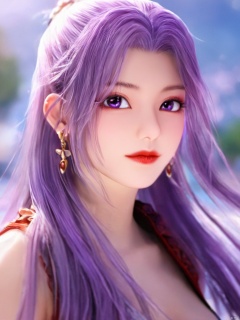 best quality,masterpiece,Yunxiao_Fairy,1girl,solo,long hair,looking at viewer,jewelry,closed mouth,purple eyes,upper body,purple hair,earrings,blurry,blurry background,sunlight,red lips,(big breasts:1.39)