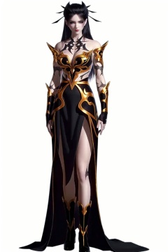 ((HRD, HUD, 8K)),((masterpiece, best quality)), highly detailed,1girl, solo, long hair, black hair, hair ornament, hair stick, black eyes, lips, red lips,tattoo, breasts, cleavage, dress, bare shoulders, armor, boots, simple background, white background, full body, long legs, standing, looking at viewer,  <lora:20240516-1715819702586:0.72>