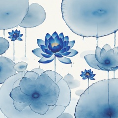 blue theme,Tie dyeing,Frogs, lotus leaves, vines, dripping water