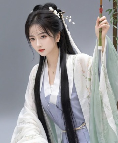solo,highly detailed,(best quality),((masterpiece)),1girl,black hair,simple_background,long hair,peiyuhan,cleavage,white cloth,hanfu,necklace,see-through,ggbh,looking_at_viewer,black_background,no neck,