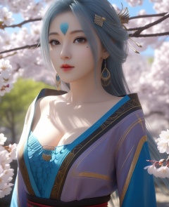 <lora:571-DA-XL-眷思量-奉眠:0.8>(,1girl, ,best quality, ),looking at viewer,  ultra detailed background,ultra realistic 8k cg,ultra detailed 8k cg,masterpiece,upper body,  (( , )),, ,science fiction,mole, ultra realistic 8k cg, ,    ,outdoors, sun,sunlight, cherry blossoms,      (cleavage), (),