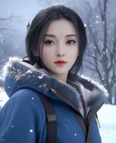 <lora:571-DA-XL-眷思量-奉眠:0.8>(,1girl, ,best quality, ),looking at viewer,masterpiece, (( , )),, realistic,science fiction,mole, ultra realistic 8k cg, ,outdoors, snow, snowing,