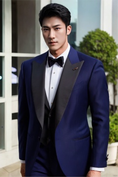 jzns,1man,male focus,asian,exquisite facial features,handsome,navy formal,Volumetric lighting,outdoors,full shot,masterpiece, realistic, best quality, highly detailed, Ultra High Resolution,profession, zuk, jznszz,chg