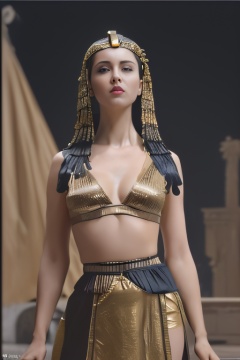 (dark background:1.10), (8k, RAW photo, best quality, masterpiece:1.2), (realistic, photo-realistic:1.2), (raw photo:1.10), (extremely detailed CG, unity 8k wallpaper:1.10), detailed and intricate, original, highres,  (1girl:1.10), cleopatra, (solo:1.10) (looking at viewer:1.10), crop top, midriff, (large breasts:1.10), sex pose, (cowboy shot:1.10), standing, from below, (clothes in front:1.2), beautiful concept illustration,   cleopatra<lora:埃及艳后(克利奥帕特拉,Cleopatra)_V1.0-10:0.8>