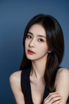 1girl, cleavage,show breasts,solo,jewelry, blue_background, realistic, sleeveless, lips, brown_eyes, ((naked)), looking_at_viewe, long_hair,