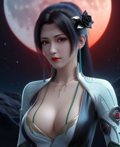 <lora:575-DA-XL-斗破苍穹-云韵-绿服:0.8>(,1girl, ,best quality, ),looking at viewer,  ,,ultra detailed background,ultra detailed background,ultra realistic 8k cg,, ,masterpiece, (( , )),, ,science fiction,mole, ,    ,red moon, black rose,     (cleavage), (),